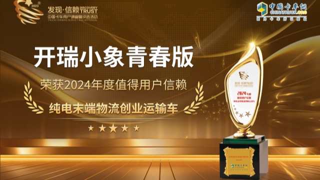 開瑞小象青春版榮獲“2024年度值得用戶信賴純電末端物流創(chuàng)業(yè)運(yùn)輸車”