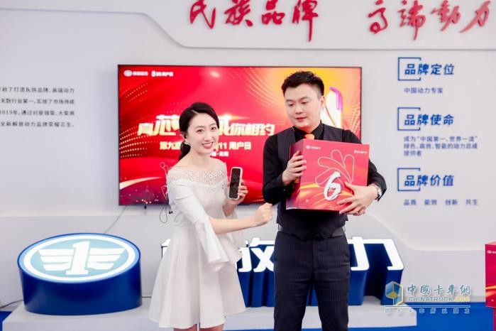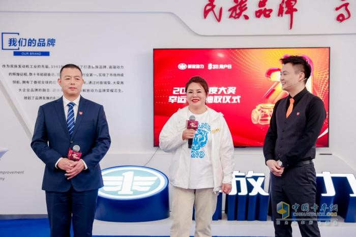一汽解放動力總成事業(yè)部品牌管理主任馮雅明(左)抽取發(fā)動機(jī)大獎