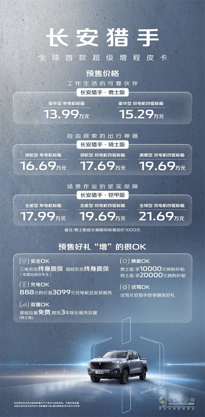 配置方面,新車擁有一體式飛翼防滾架和分段式開啟的動感尾門等配置,車內(nèi)配備有無線充電,且主駕座椅擁有電動六向調(diào)節(jié)和座椅加熱功能。此外,長安獵手還搭載了全場景戶外放電功能,它配置了3.3kW大功率放電面板,擁有雙220V插頭和最大227度的儲備電量,可滿足消費者更多的場景化需求。