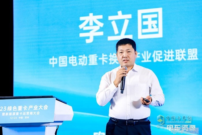 中國(guó)電動(dòng)重卡換電產(chǎn)業(yè)促進(jìn)聯(lián)盟秘書(shū)長(zhǎng)李立國(guó)發(fā)表了《重卡換電互通互換干線(xiàn)網(wǎng)絡(luò)建設(shè)趨勢(shì)》的主題演講,他強(qiáng)調(diào)中長(zhǎng)途干線(xiàn)是換電優(yōu)勢(shì)場(chǎng)景,占重卡總量的66%,2024年,將成為干線(xiàn)換電網(wǎng)絡(luò)建設(shè)的元年。