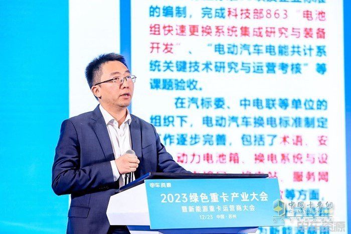 江蘇省汽車(chē)行業(yè)協(xié)會(huì)副理事長(zhǎng)李鑫發(fā)表了《從商用車(chē)換電演變歷程看重卡換電可持續(xù)發(fā)展》 的主題演講,他指出,2011年,商用車(chē)換電首次商業(yè)化運(yùn)營(yíng),并介紹南京商用車(chē)(公交)充換電站運(yùn)營(yíng)情況以及南京市商用車(chē)換電模式10年推廣總結(jié)經(jīng)驗(yàn)。