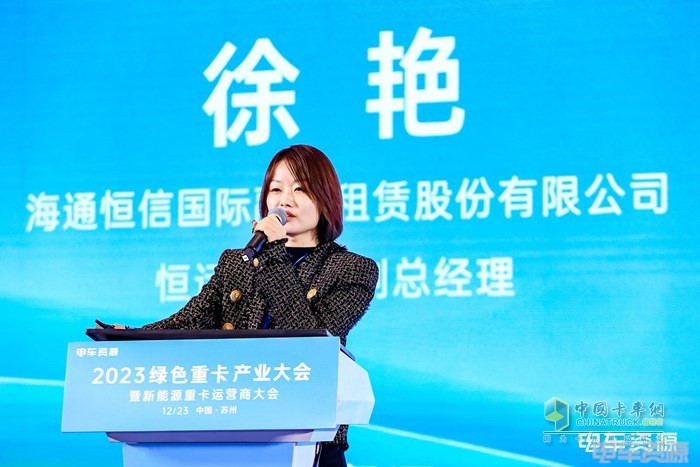 海通恒信國(guó)際融資租賃股份有限公司恒運(yùn)子公司副總經(jīng)理徐艷發(fā)表了《交通物流、補(bǔ)能基建 在新能源重卡運(yùn)營(yíng)中的多變量協(xié)同分享》的主題演講,她表示,在能源“消費(fèi)側(cè)”電動(dòng)化的背景下,以新能源車(chē)輛為載體、創(chuàng)造的共享生態(tài)的參與者們,開(kāi)展的對(duì)傳統(tǒng)物流行業(yè)的多變量“重構(gòu)、協(xié)同”。