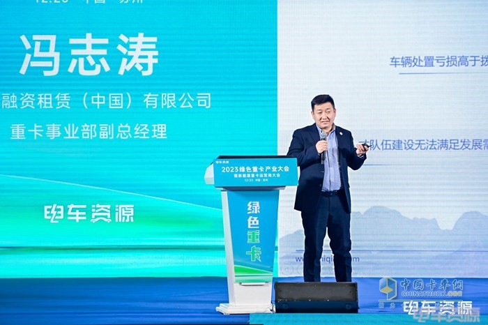 獅橋融資租賃(中國(guó))有限公司重卡事業(yè)部副總經(jīng)理馮志濤發(fā)表了《金融如何賦能新能源重卡產(chǎn)業(yè)》的主題演講,他表示:“新能源重卡行業(yè)迎來(lái)高速發(fā)展期,但成本和基礎(chǔ)設(shè)施依舊是瓶頸問(wèn)題。金融內(nèi)卷嚴(yán)重,風(fēng)險(xiǎn)與收益不成正比,種種痛點(diǎn)的解決關(guān)鍵在靈活多樣的融資模式、創(chuàng)新多變的業(yè)務(wù)模式。從金融眼光來(lái)看,新能源行業(yè)喜憂(yōu)參半,金融行業(yè)作為潤(rùn)滑劑,仍需腳踏實(shí)地前行,與行業(yè)共同健康發(fā)展。”