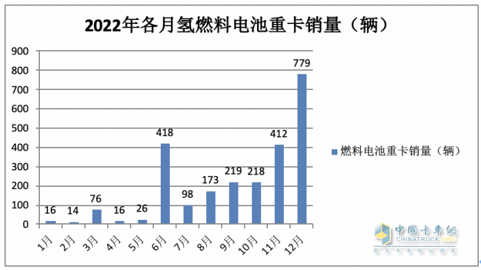 截圖2,2022年1-12月燃料電池重卡銷量(數(shù)據(jù)來源:公開上牌信息)