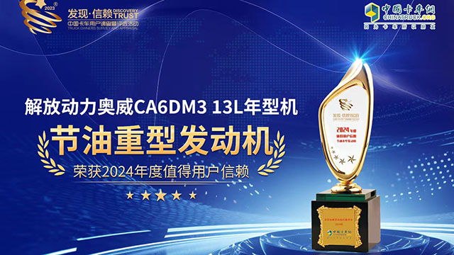 恭喜解放動(dòng)力奧威13L年型機(jī)榮獲2024年度值得用戶(hù)信賴(lài)節(jié)油重型發(fā)動(dòng)機(jī)