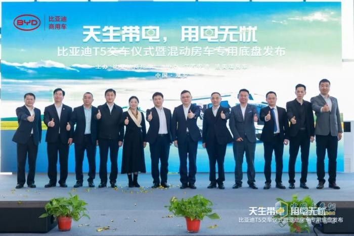 2024年3月30日,比亞迪輕卡T5交車儀式暨混動房車專用底盤發(fā)布活動于淮安舉行,以技術(shù)創(chuàng)新驅(qū)動產(chǎn)品迭代,以市場需求滿足用戶訴求。此次,淮安市政府領(lǐng)導、比亞迪商用車領(lǐng)導以及企業(yè)客戶、經(jīng)銷商、媒體等眾人共同見證了比亞迪商用車助推物流運輸、入局房車旅居等各行業(yè)綠色轉(zhuǎn)型升級的大手筆。
