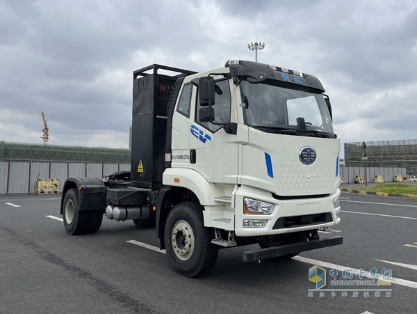 整車自重為9.5噸,采用2550窄體駕駛室(對于牽引車而言),高度為3.39米。采用寧德時代LFP以及一汽自主研發(fā)電機。