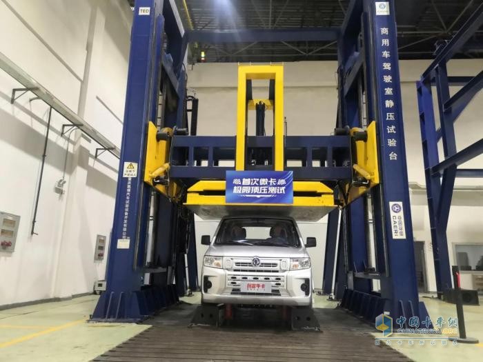 創(chuàng)富??ㄔ谥袊惺状挝⒖O限頂壓測試時(shí),瞬間承受46920牛的壓力情況下,車頂及A/B柱均變形微小,給車內(nèi)駕乘人員留有足夠的安全空間。壓力值大于5倍國家標(biāo)準(zhǔn)(9310牛),意味著給駕乘人員5倍的安全呵護(hù),這也是我國輕型商用車首次完成這樣的極限頂壓測試。