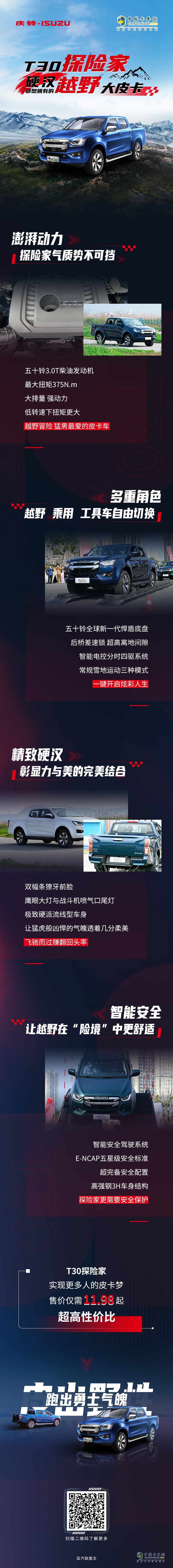 多場(chǎng)景 全覆蓋 硬實(shí)力,慶鈴五十鈴T30探險(xiǎn)家即將上市!
