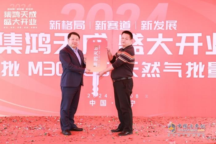 2024年4月8日,由中集車輛和時(shí)代天成合作成立廣西集鴻天成汽車銷售服務(wù)有限公司(以下簡稱“集鴻天成”)開業(yè)儀式在廣西首府南寧隆重舉行,這是中集·陜汽“一個(gè)車企"全新營銷理念在我國商用車領(lǐng)域的重要進(jìn)展。三方聚力 璀璨啟航 廣西集鴻天成今日南寧盛大啟幕!三方聚力 璀璨啟航 廣西集鴻天成今日南寧盛大啟幕!