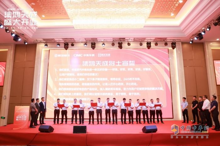 同時(shí),開業(yè)儀式現(xiàn)場(chǎng)也為集鴻天成緊密合作伙伴舉行了中集·陜汽“好牽掛專屬渠道”授牌儀式,期待未來攜手并肩,從新出發(fā),共創(chuàng)輝煌。