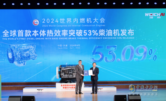 很快,在2023年4月20日,濰柴在天津正式對(duì)外發(fā)布了其本體熱效率高達(dá)53.09%的柴油發(fā)動(dòng)機(jī)。