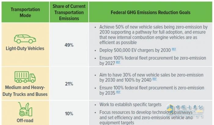 這一零排放貨運(yùn)的新承諾符合并支持拜登總統(tǒng)到2035年實(shí)現(xiàn)無(wú)碳污染能源部門和到2050年實(shí)現(xiàn)運(yùn)輸部門凈零排放的現(xiàn)有目標(biāo)。這也符合政府與其他國(guó)家合作的承諾,即確定途徑和實(shí)施行動(dòng),使零排放中重型汽車在2030年達(dá)到30%的新銷量,到2040年達(dá)到100%的新銷量。