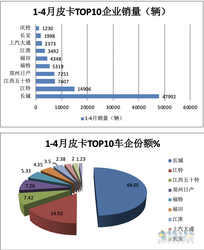 三、長城皮卡居榜首;江鈴鄭州日產(chǎn)分列二三;TOP10同比6降4增;福田領(lǐng)漲