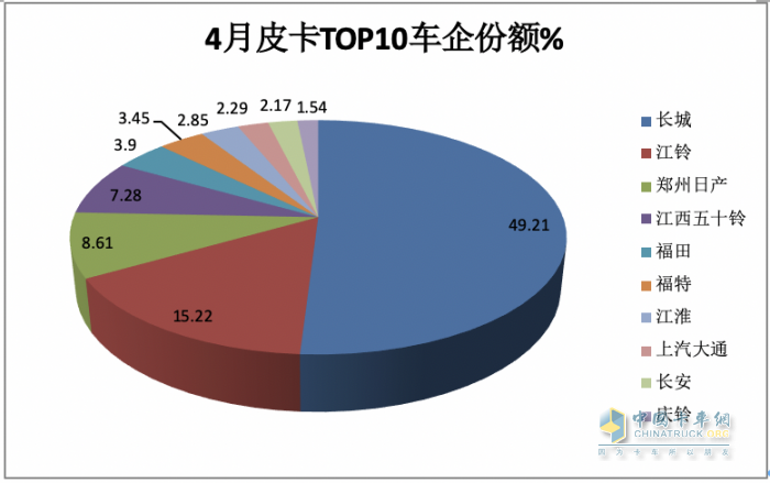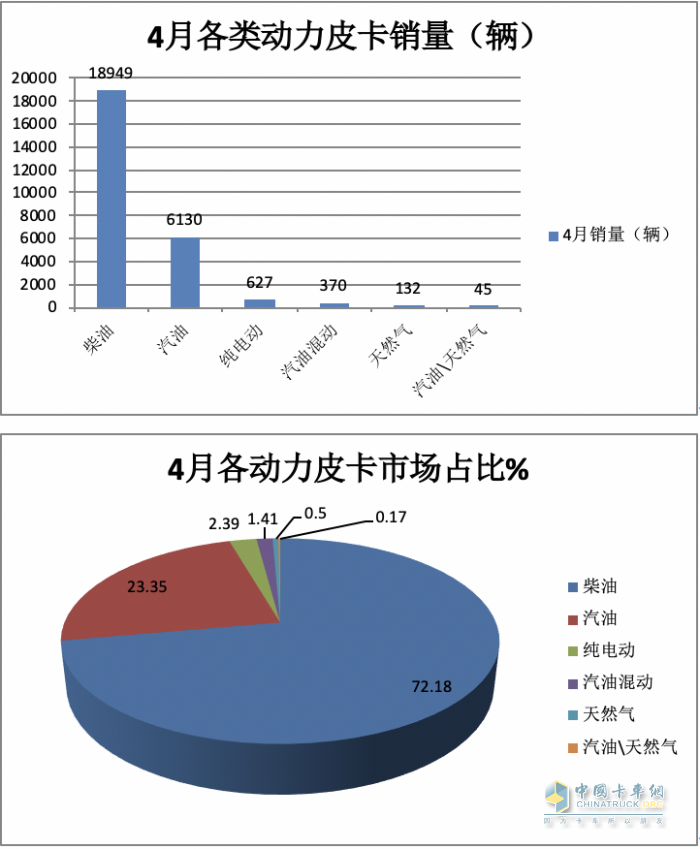此外,隨著動(dòng)力形式的多樣化,今年4月皮卡車型擁有了更加豐富的動(dòng)力形式,采用汽油、天然氣雙燃料形式的皮卡車型均有銷售,這也是今年4月皮卡市場的一個(gè)特點(diǎn)。