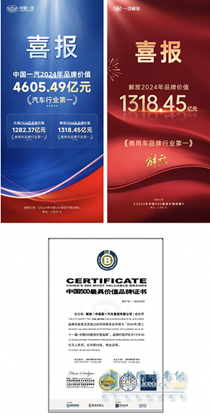 2024年6月19日,第二十一屆“世界品牌大會(huì)”在北京舉行。會(huì)上,世界品牌實(shí)驗(yàn)室發(fā)布了2024年《中國500最具價(jià)值品牌》分析報(bào)告,中國一汽2024年品牌價(jià)值為4605.49億元,蟬聯(lián)汽車行業(yè)第一,連續(xù)21年上榜中國500最具價(jià)值品牌。