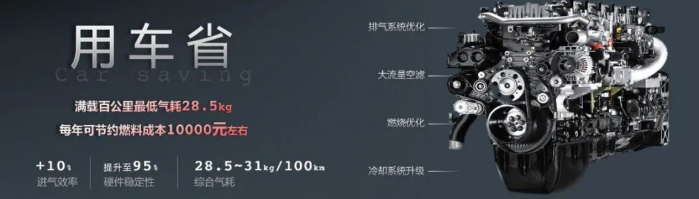 不僅僅是購車成本的降低,聯(lián)合重卡官方發(fā)布的火麒麟綜合氣耗28.5kg/百公里的數(shù)值也成為了卡友們廣泛關(guān)注的焦點,畢竟,在車輛運營成本中,燃料消耗成本和維護保養(yǎng)成本占據(jù)了相當大的比重!火麒麟搭載的玉柴6K 13升發(fā)動機,憑借其“低速大扭矩”的特性,以及無噴嘴設(shè)計和CFV連續(xù)流技術(shù),實現(xiàn)了更高的燃燒效率,從而降低了能耗。此外,排氣系統(tǒng)優(yōu)化、燃燒精細標定、冷卻系統(tǒng)升級等一系列舉措,確保了火麒麟整車經(jīng)濟性能的最佳表現(xiàn)。![]()