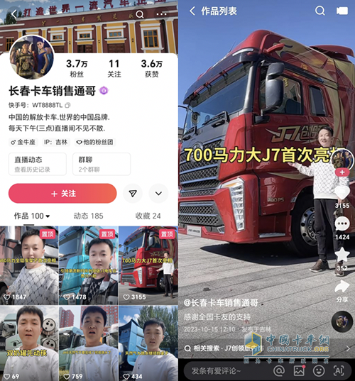 隨著新媒體時(shí)代的不斷發(fā)展,短視頻直播平臺(tái)受到越來越多的人關(guān)注,其中不少解放卡友也在各大平臺(tái)分享著自己與解放卡車的創(chuàng)業(yè)故事。“解放夢想合伙人”——王通就是其中的一員。