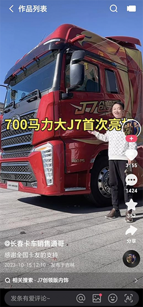 隨著新媒體時(shí)代的不斷發(fā)展,短視頻直播平臺(tái)受到越來越多的人關(guān)注,其中不少解放卡友也在各大平臺(tái)分享著自己與解放卡車的創(chuàng)業(yè)故事。“解放夢想合伙人”——王通就是其中的一員。