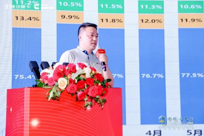 陜重汽銷售公司銷售管理部經(jīng)理袁昊登臺致辭,他表示:“當(dāng)前,面對燃氣、載貨車細分市場機遇,陜汽攜手西安康明斯、法士特等企業(yè),關(guān)注陜汽新明珠載貨車產(chǎn)品經(jīng)濟性與高效率,未來將借助康明斯燃氣動力和陜汽高品質(zhì)載貨車研發(fā)制造經(jīng)驗,為客戶帶來更好的運輸體驗,助推載貨物流行業(yè)轉(zhuǎn)型升級。”![]()