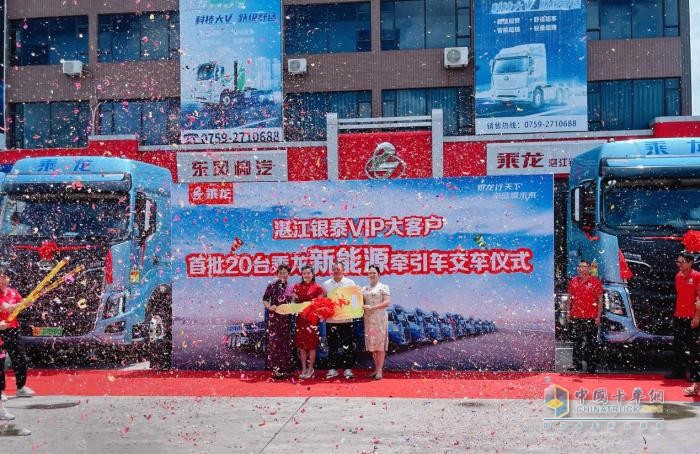 2024年6月26日,湛江銀泰VIP大客戶首批20臺(tái)乘龍新能源牽引車交車儀式在廣東湛江舉行。此次首批交付的20臺(tái)乘龍H7換電牽引車,將專門(mén)服務(wù)于湛江地區(qū)的砂石短途運(yùn)輸,以高效零碳物流解決方案,有力推動(dòng)湛江運(yùn)輸產(chǎn)業(yè)的綠色轉(zhuǎn)型,實(shí)現(xiàn)降本增效,并在節(jié)能減排等方面發(fā)揮重要作用。![]()