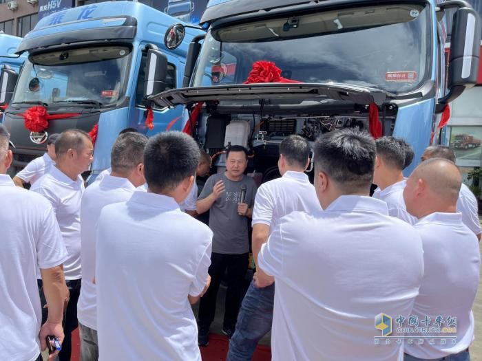 在車輛培訓(xùn)環(huán)節(jié)中,東風(fēng)柳汽專業(yè)工程師通過(guò)詳實(shí)數(shù)據(jù)和生動(dòng)案例,展示了乘龍H7換電牽引車在節(jié)能減排、降低成本和提高效率方面的顯著優(yōu)勢(shì)。同時(shí),工程師們還為客戶提供了現(xiàn)場(chǎng)操作指導(dǎo),確保每位司機(jī)充分了解和掌握車輛的使用方法和注意事項(xiàng)。![]()