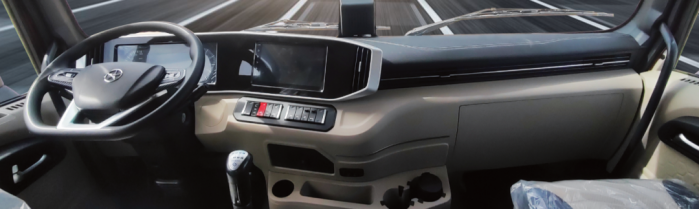 大運(yùn)V7H燃?xì)庵乜{駛室采用“轎車化”駕駛艙布局,大范圍軟性包覆、中控一體化設(shè)計(jì),營(yíng)造出極致科技感和強(qiáng)烈的視覺(jué)沖擊;配置了極具科技感的10寸觸控大屏,搭配多功能方向盤(pán),操作更加明確、清楚;還對(duì)主駕座椅舒適性進(jìn)行了升級(jí),標(biāo)配多功能氣囊座椅,實(shí)現(xiàn)腰托、坐墊調(diào)節(jié)和阻尼和降速等功能,助力卡友駕乘更加平順舒適。![]()