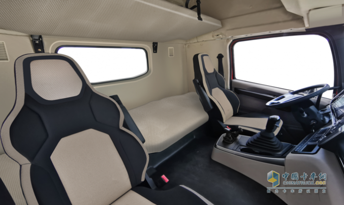 駕駛室內(nèi)標(biāo)配高頂雙層臥鋪,搭配駕駛室后凸造型,臥鋪寬度可達(dá)800mm,活動(dòng)空間大,休息更舒適、更便捷;有頂柜、下臥鋪儲(chǔ)物盒等多維度儲(chǔ)物空間,可以滿足卡友日常用品的放置需求;為了讓卡友駕乘更穩(wěn)、更舒適,大運(yùn)V7H燃?xì)庵乜{駛室內(nèi)還做到了超強(qiáng)隔振、多重隔音、雙層密封,這不妥妥的加分項(xiàng)嘛!智能舒適這方面必須給滿分!![]()