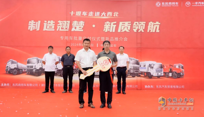 2024年6月16日,東風商用車有限公司&湖北一專汽車股份有限公司在延安市志丹縣聯(lián)合舉辦“十堰車走進大西北”——專用車批量交付儀式暨新品推介會。現(xiàn)場批量交付東風天龍KC原油運輸車,并與當?shù)鼐偶叶変N售商簽署了代理意向協(xié)議。![]()