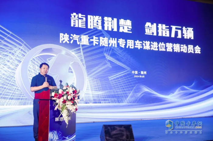 陜重汽銷售公司黨委副書記、副總經(jīng)理魏炳亮為會議致辭。隨州作為“專汽之都”,擁有得天獨厚的資源和市場,2024年在合作伙伴的大力支持下,陜重汽通過渠道分級管理、產(chǎn)品聚焦、專鑄細分市場、市場推廣等措施,實現(xiàn)了階段性突破,油田車、筑路車等細分市場以絕對優(yōu)勢蟬聯(lián)第一,上半年陜汽重卡專用車實現(xiàn)銷量份額雙增長,主機廠市場份額增長第一。