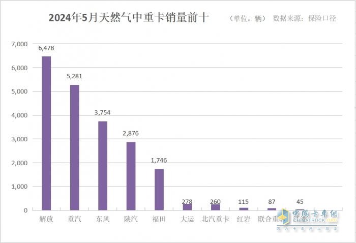 天然氣細(xì)分市場(chǎng)銷量依然在“峰值”,5月份國(guó)內(nèi)天然氣中重卡實(shí)銷2.09萬輛,同比增長(zhǎng)84%。今年3、4、5月市場(chǎng)連續(xù)三個(gè)月銷量達(dá)2萬輛以上。解放、重汽、東風(fēng)、陜汽和福田,5家車企天然氣中重卡銷量均在“千輛”級(jí)以上。其中,解放單月銷量6,478輛,市場(chǎng)份額31.0%,持續(xù)蟬聯(lián)天然氣中重卡銷量榜首。重汽月度銷量5,281輛,市場(chǎng)份額25.3%,排名行業(yè)第二;東風(fēng)銷量3,754輛,市場(chǎng)份額18.0 %;陜汽銷量2876輛,市場(chǎng)份額13.8 %;福田銷量1746輛,市場(chǎng)份額8.7%。![]()