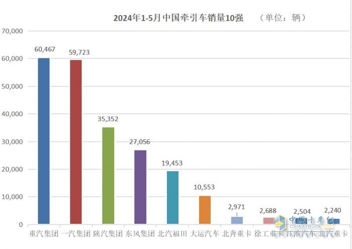 從細(xì)分市場(chǎng)來看,對(duì)于中國(guó)牽引車市場(chǎng)的“榜首之爭(zhēng)”尤為激烈。今年1-5月,重汽累計(jì)銷售牽引車60,467輛,位居行業(yè)第一;一汽解放步步緊逼,前5個(gè)月累計(jì)銷量59,723輛,排名第二,兩大巨頭合計(jì)分食了今年?duì)恳乜ㄊ袌?chǎng)近五成的份額(49.7%);陜汽牽引車銷量35,352輛,位列行業(yè)第三;東風(fēng)、福田分別銷售27,056和19,453輛,在牽引車銷量排名中位居第四和第五位。![]()