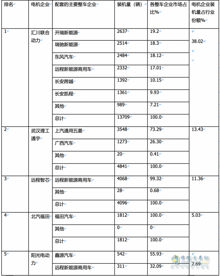 接下來(lái)的5月份,國(guó)內(nèi)新能源物流車配套電機(jī)市場(chǎng)的競(jìng)爭(zhēng)格局會(huì)如何變化?請(qǐng)繼續(xù)關(guān)注中國(guó)卡車網(wǎng)的后續(xù)分析報(bào)道!