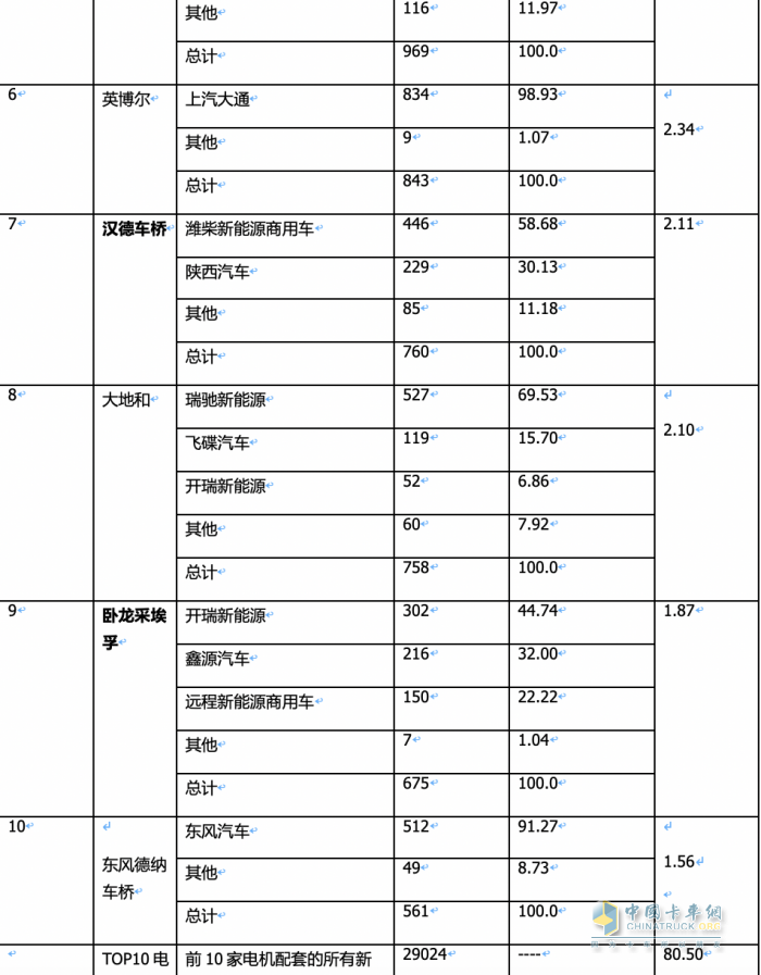 ---其余配套電機(jī)品牌配套數(shù)量均在800輛以下。