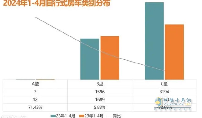 截圖1,2024年1-4月各類房車銷量及同比(來源:公開的終端上牌信息)