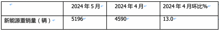 表2,2024年5月新能源重銷量環(huán)比:![]()