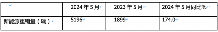 表1,2024年5月新能源重銷量同比:![]()