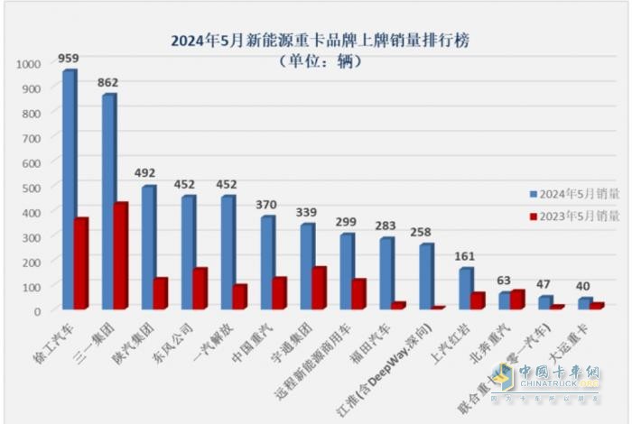 截圖2,2024年5月新能源重卡企業(yè)銷量(數(shù)據(jù)來(lái)源:公開的終端上牌信息)