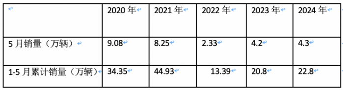 2024年1-5月?tīng)恳嚴(yán)塾?jì)銷售22.8萬(wàn)輛,也居于近5年同期第三,但與2020年1-5月的34.35萬(wàn)輛及2021年1-5月的44.93萬(wàn)輛相差甚遠(yuǎn),也屬于較低水平。