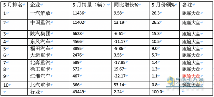 ---TOP10同比5增5降,北汽重卡同比大漲53.14領(lǐng)漲。