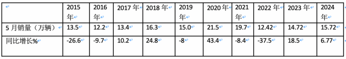 表2,近10年5月輕卡銷量及同比增速比較(數(shù)據(jù)來(lái)源:中汽協(xié)):![]()