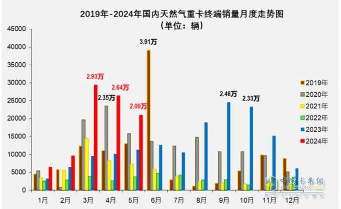 截圖2,近6年各月燃氣重卡銷量走勢(數(shù)據(jù)來源:公開的終端上牌信息)