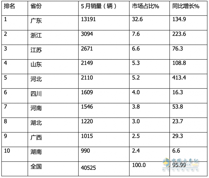 上表可見,在今年5月新能源物流車流向的前10個省份中: