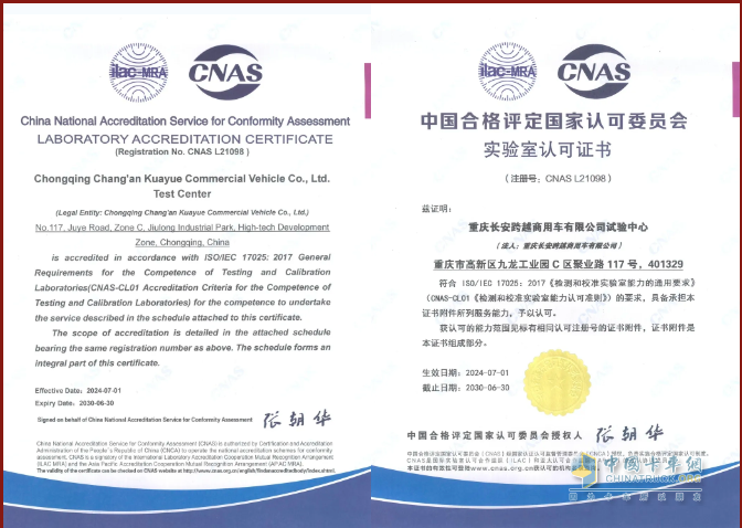 長安跨越一直致力于完善實(shí)驗(yàn)室管理、提升試驗(yàn)?zāi)芰?,推動產(chǎn)品和服務(wù)走向世界。此次CNAS實(shí)驗(yàn)室認(rèn)可不僅是對長安跨越持續(xù)提升研發(fā)實(shí)力所做努力的肯定,也是對公司研發(fā)未來發(fā)展的鞭策。長安跨越將持續(xù)提升企業(yè)實(shí)驗(yàn)室管理和試驗(yàn)?zāi)芰?,為客戶提供高品質(zhì)高價值商用車。