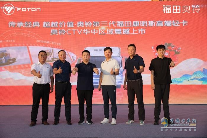 活動(dòng)現(xiàn)場(chǎng),奧鈴營銷公司常務(wù)副總經(jīng)理、南方營銷公司總經(jīng)理王波,奧鈴營銷公司品牌副總經(jīng)理孫菲,奧鈴湖北大區(qū)經(jīng)理鄭志剛,武漢福眾總經(jīng)理蔣照華,孝感軍合董事長劉金國,福田康明斯大客戶經(jīng)理李浩然等領(lǐng)導(dǎo)和嘉賓共同上臺(tái),重磅發(fā)布了奧鈴第三代福田康明斯高端輕卡——奧鈴CTV。![]()