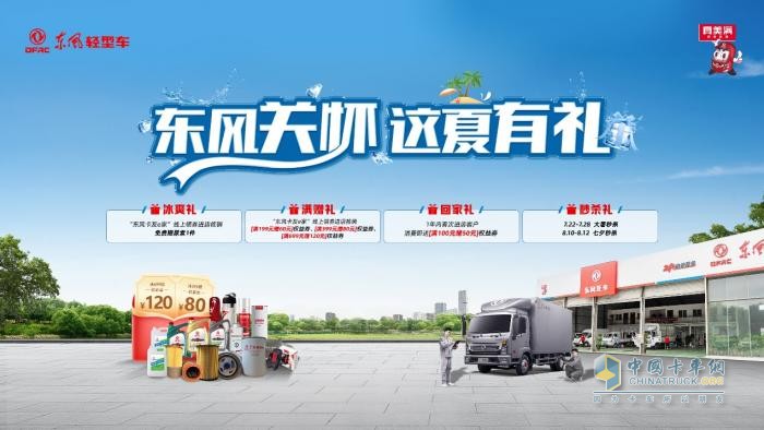 酷暑逢三伏,卡友的日常運輸面臨高溫與暴雨的雙重考驗,對駕駛和行車提出了嚴(yán)峻挑戰(zhàn)。為了讓卡友在酷暑三伏天能有一個舒爽的駕乘環(huán)境和良好的車況,從而保障運途安全。在7-8月份,東風(fēng)輕型車開展“東風(fēng)關(guān)懷這夏有禮”主題活動,推出四重好禮,助力卡友冰爽一夏。![]()