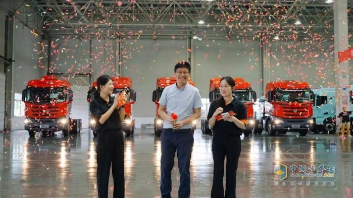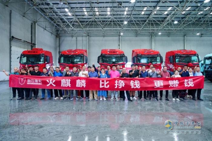 活動現(xiàn)場,隨著周總的一聲令下,在來自全國各地36位火麒麟車主的共同見證下,百臺火麒麟同時發(fā)出震耳欲聾的歡鳴聲,依次緩緩駛離生產(chǎn)線,奔赴主人的懷抱?,F(xiàn)場的36位客戶,也成為了聯(lián)合重卡火麒麟的首批車主。![]()