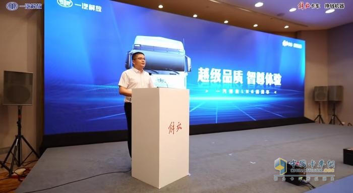 一汽解放青島中重型車產(chǎn)品線總經(jīng)理助理、載貨PDT經(jīng)理彭玉全介紹產(chǎn)品優(yōu)勢