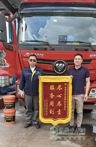 對(duì)此,客戶負(fù)責(zé)人表示:“歐曼服務(wù)很給力,安排專門服務(wù)團(tuán)隊(duì)駐點(diǎn)保障,檢修、維修、處理臨時(shí)問題非常高效,確保了出行車輛的正常、高效運(yùn)轉(zhuǎn)。無論是服務(wù)態(tài)度、服務(wù)積極性、問題處理及時(shí)性還是維修質(zhì)量,我們都很滿意!歐曼讓我們的運(yùn)輸更安全、更高效!”同時(shí),客戶負(fù)責(zé)人還將一面印有“服務(wù)周到盡心盡責(zé)”的錦旗送到駐點(diǎn)人員手中,以此表達(dá)對(duì)于歐曼品牌的肯定與感謝。
