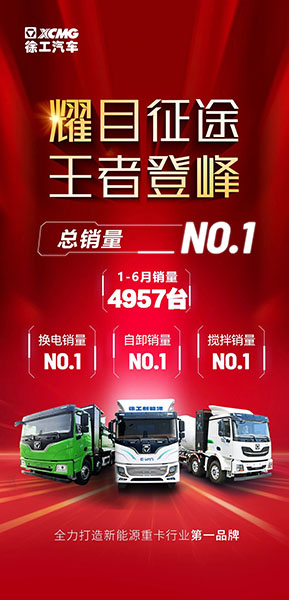 2024年1-6月,徐工新能源重卡累計銷量4957輛,繼2023年度累銷冠軍、2024一季度累銷冠軍的良好勢頭,再次榮登2024年半年度新能源重卡銷量榜首。![]()